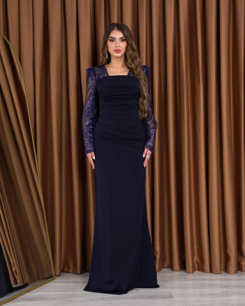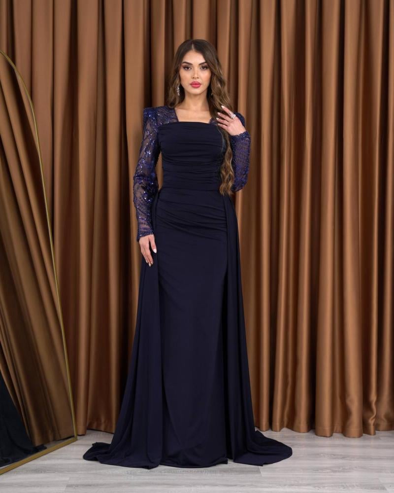 فستان سهره كحلي بذيل